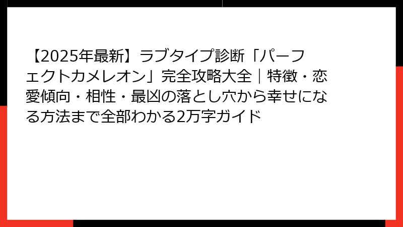 - 「ラブタイプ診断で『パーフェクトカメレオン』が出ました……それってどんなタイプ?」2025年最新・完全ガイド