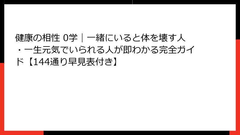 健康の相性 0学|一緒にいると体を壊す人・一生元気でいられる人が即わかる完全ガイド【144通り早見表付き】