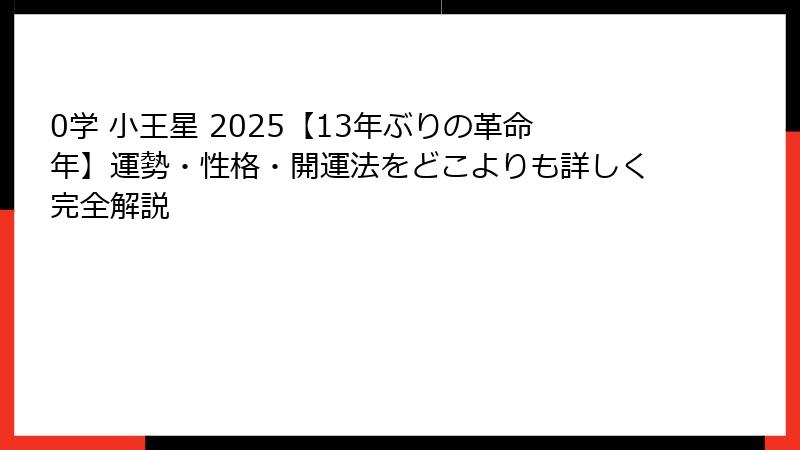 0学 小王星 2025【13年ぶりの革命年】運勢・性格・開運法をどこよりも詳しく完全解説
