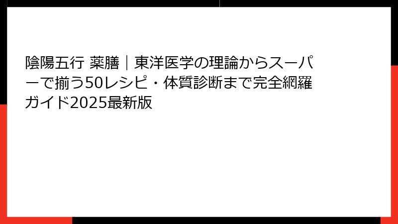 - 季節と体調別・陰陽五行薬膳レシピ50選【2025年最新版】