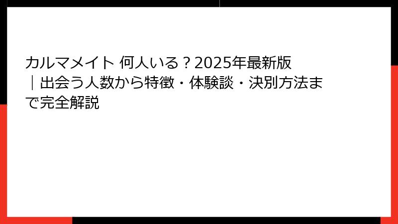 カルマメイト人数に関する全9説を徹底比較(2025年最新版)
