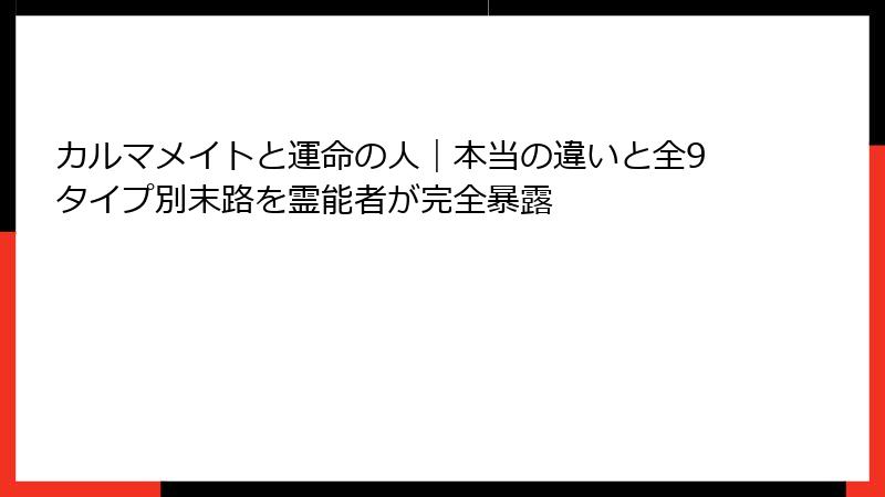 - カルマメイトの9つのタイプ別特徴と末路完全ガイド
