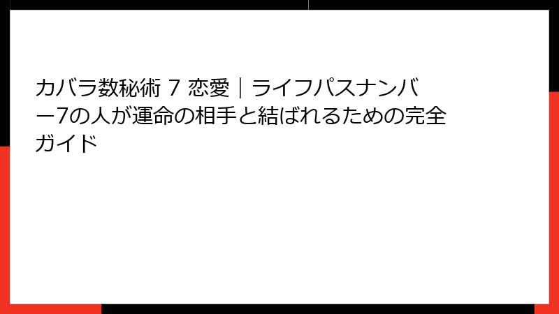 カバラ数秘術 7 恋愛|ライフパスナンバー7の人が運命の相手と結ばれるための完全ガイド
