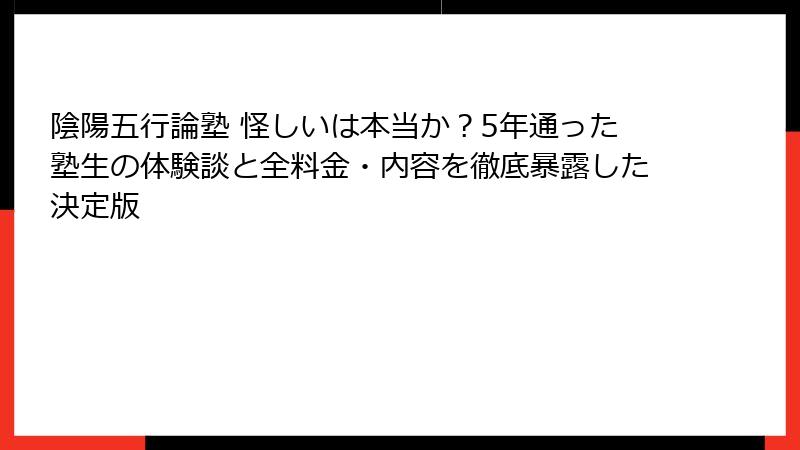 本記事では、そんな陰陽五行論塾の真相を徹底的に検証します。