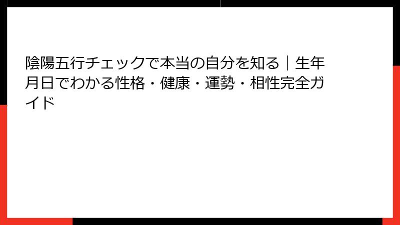 陰陽五行チェックで本当の自分を知る|生年月日でわかる性格・健康・運勢・相性完全ガイド