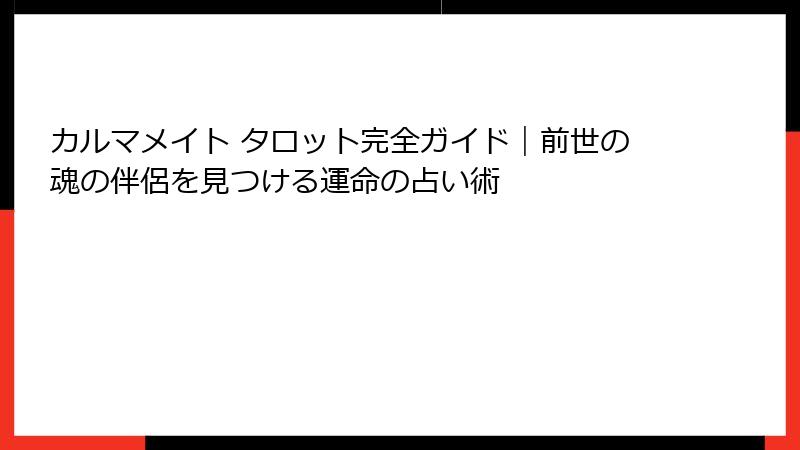 カルマメイト タロット完全ガイド|前世の魂の伴侶を見つける運命の占い術