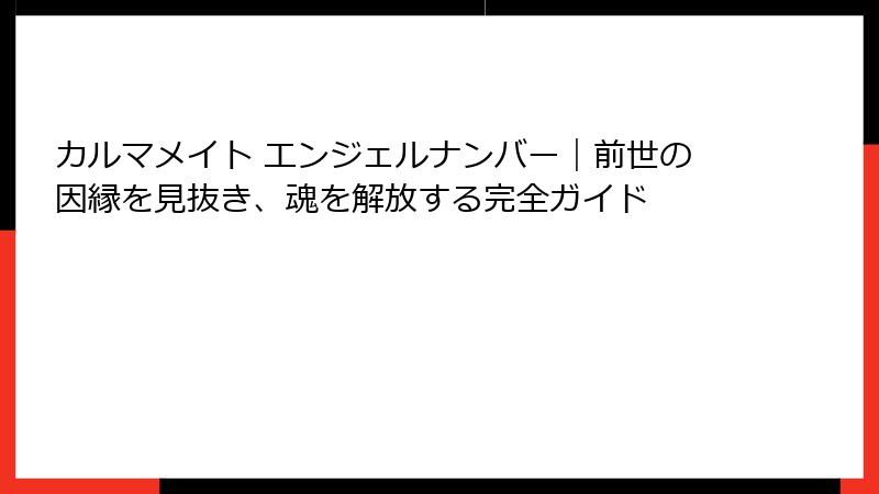 - カルマメイトとエンジェルナンバーの関連性:実践的な見分け方と解消法