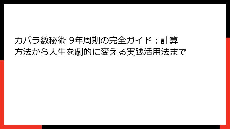 カバラ数秘術 9年周期の完全ガイド:計算方法から人生を劇的に変える実践活用法まで