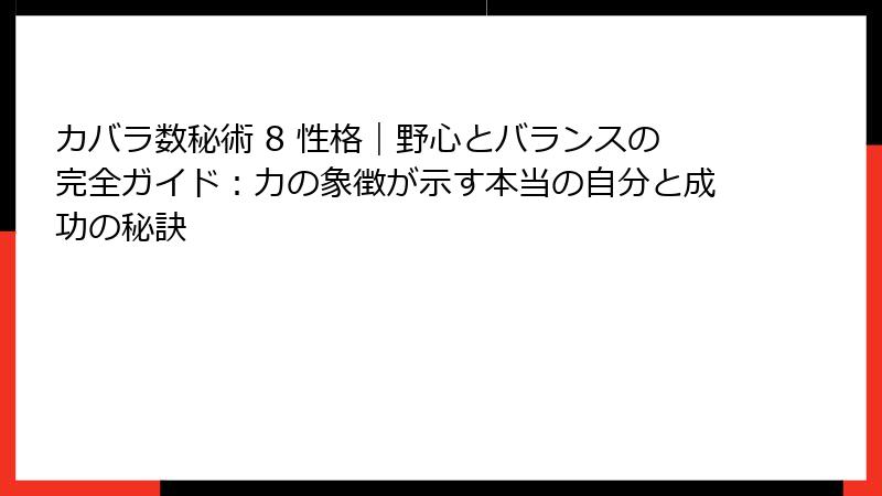- カバラ数秘術で数字8が表す性格の核心:野心と力のバランス