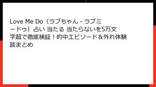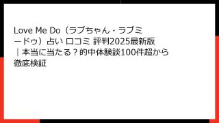 Love Me Do(ラブちゃん・ラブミードゥ) Love Me Do(ラブちゃん・ラブミードゥ)占い 料金 無料で本格鑑定を受ける全方法【2025年12月最新版・体験者が全部暴露】