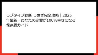 ラブタイプ診断 ラブタイプ診断 うさぎ完全攻略|2025年最新・あなたの恋愛が100%幸せになる保存版ガイド