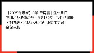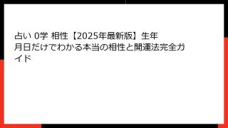 【2025年最新版】0学占いでわかる「本当の相性」完全ガイド あなたが今、0学占いの相性を検索した本当の理由 「星座占いでは当たらない」「四柱推命は難しすぎる」「血液型占いはもう古い」――そう感じて、ついにここにたどり着いたあなたは、間違い...