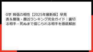 0学 背信の相性【2025年最新版】早見表&最強・最凶ランキング完全ガイド|裏切る相手・死ぬまで信じられる相手を徹底解剖