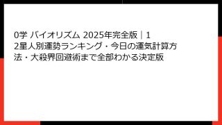0学ブログとは?2025年最新版|占星術「0学」の基本からブログ活用法まで完全解説 「0学ブログ」で検索する人が今、本当に知りたいこと 2025年現在、GoogleやYahoo!で「0学 ブログ」と検索すると、毎日数千人が同じキーワードを入...
