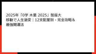 【2025年版】0学占い「魚王星」の全体運勢と今年の大きなテーマ 魚王星であるあなたへ、2025年は「12年に一度の絶対王者の年」がやってくる おめでとうございます。 2025年は、0学占いにおいて魚王星が迎える「過去12年で最も強い頂点の...