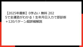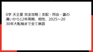 0学占星術とは?話題の新占術をゼロからわかりやすく解説【2025年最新版】 「0学占星術」って結局なにがすごいの?一番わかりやすい定義 0学占星術とは、御射山宇彦(みしゃやまうひこ)先生が約50年の研究を経て体系化した「運命学」の一種で、「...