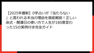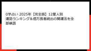 0学占いとは?実は秋田で「異常なまでに当たる」と言われる理由 0学占いの基礎知識を完全に理解する 0学占いはいつ、誰が創始したのか 0学占いは、御射山宇彦(みさやま うひこ)先生が1994年に発表した全く新しい占術です。 四柱推命をベースに...
