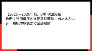 0学 【2025〜2026年版】0学 秋田完全攻略|秋田県民の支配星別運勢・当たる占い師・鳥肌体験談まで全部暴露