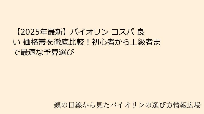 【2025年最新】バイオリン コスパ 良い 価格帯を徹底比較!初心者から上級者まで最適な予算選び