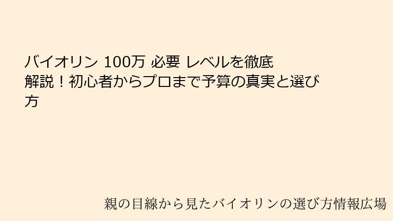 特に「バイオリン 100万 必要 レベル」という検索キーワードで調べてみると、高額なイメージが強く、100万円以上が必要なのかと不安になる方も多いでしょう。