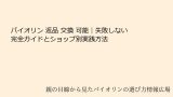 ショップ選び基準: 専門性高(バイオリン専用店)、試奏可能、アフターサービス充実。