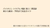 さらに学びたいなら、バイオリン練習方法、メンテナンスガイド、レッスン選びなどの関連記事を。