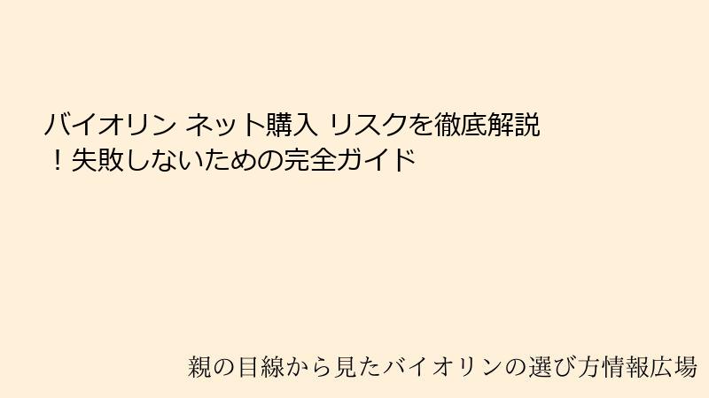 - バイオリンをネットで買うメリットと、知っておくべきリスクの全体像