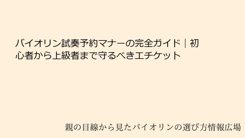 バイオリン試奏予約マナーの旅、続きをあなたの手で。
