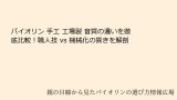 - ボウイングの揺れ: 肘の位置が低く、弓が弦から離れやすい。