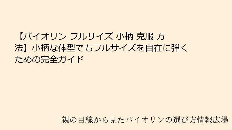 以上で、「バイオリン フルサイズ 小柄 克服 方法」の全貌をお伝えしました。
