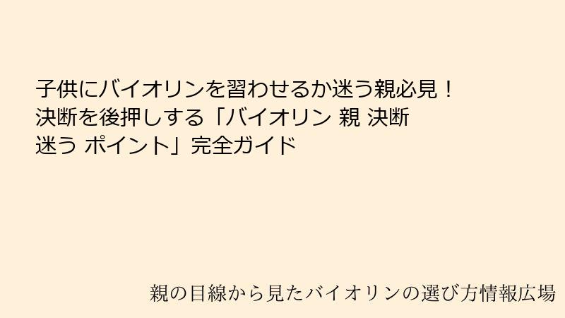子供にバイオリンを習わせるか迷う親必見!決断を後押しする「バイオリン 親 決断 迷う ポイント」完全ガイド