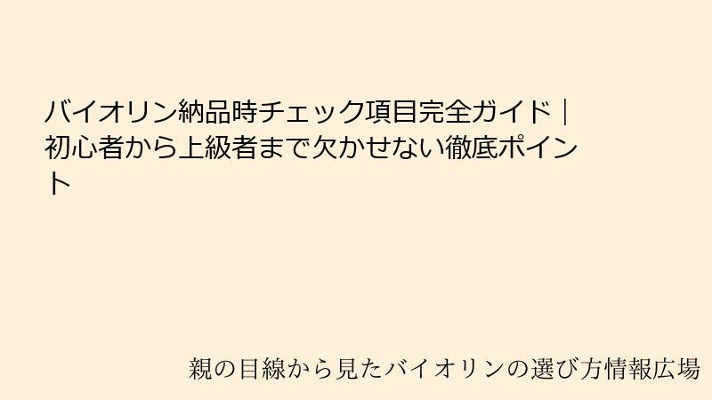 以上のように、納品後チェックの注意点とまとめは、バイオリンライフの基盤です。