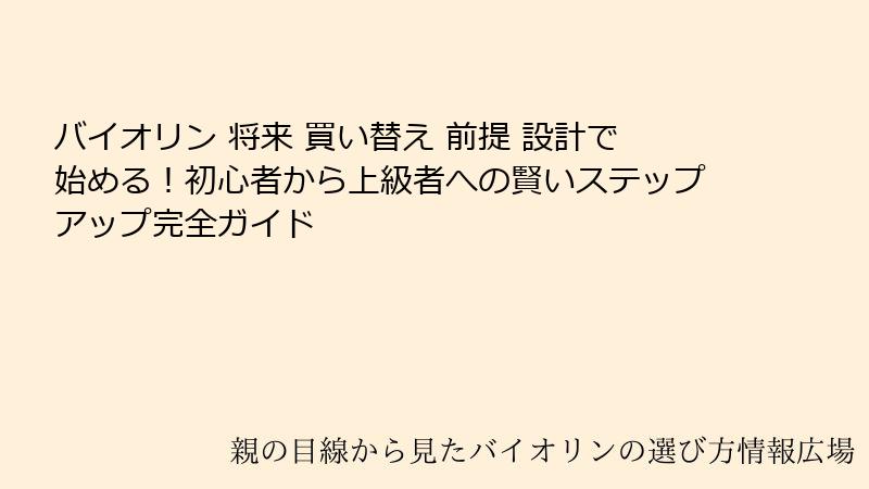 1. バイオリンを将来買い替えることを前提とした設計:初心者から上級者へのステップアップガイド