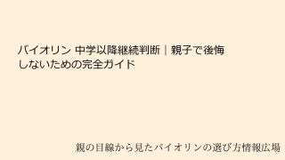 バイオリンを中学以降継続するかどうかの判断ポイント - 親子で悩む音楽教育の岐路バイオリンを中学以降継続するかどうかの判断は、多くの親子が直面する重要な岐路です。小学生の頃から熱心にバイオリンを習ってきた子供たちが、中学校への進学を機に、勉...