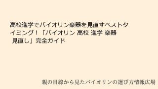 高校進学でバイオリン楽器を見直すベストタイミング!「バイオリン 高校 進学 楽器 見直し」完全ガイド