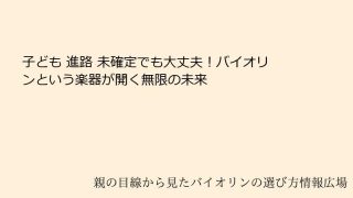 バイオリンで子どもの未来を広げる:進路未確定の子どもに楽器教育がおすすめな理由子どもの進路が未確定で、どんな習い事をさせたらいいのか悩んでいる親御さんは多いのではないでしょうか。バイオリンという楽器は、そんな進路未確定の子どもたちにぴったり...