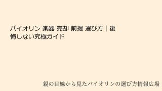 バイオリン選びの新常識:売却を前提としたアプローチの重要性バイオリンという楽器は、音楽の歴史の中で特別な位置を占めています。美しい音色と繊細な表現力で、多くの人々を魅了してきました。しかし、バイオリンを選ぶ際には、単に演奏のしやすさや音の好...
