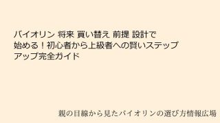 バイオリンを将来買い替えることを前提とした設計:初心者から上級者へのステップアップガイドバイオリンを始めたいと思っている多くの方にとって、最初の一歩はワクワクする一方で、経済的な負担や選択の難しさが付きまといます。特に、将来的に買い替えを前...
