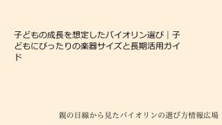 子どもの成長を想定したバイオリン選びの重要性子どもたちが音楽の世界に足を踏み入れる際、特にバイオリンという楽器を選ぶ場合、親御さんたちはさまざまな悩みを抱えることでしょう。バイオリンは美しい音色を奏でる魅力的な楽器ですが、子どもの成長を想定...