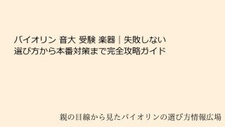 バイオリンで音大受験を目指すあなたへ – 基礎から始める楽器選びと準備の全体像バイオリンという楽器は、弦楽器の中でも特に表現豊かな響きを持ち、音大受験を目指す多くの音楽愛好家を魅了してやみません。もしあなたが「バイオリン 音大 受験 楽器」...