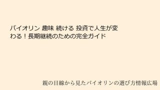 バイオリン 趣味 続ける 投資で人生が変わる!長期継続のための完全ガイド