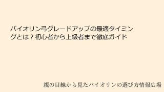 バイオリンの弓をグレードアップするタイミングとは? 初心者から上級者への移行ガイドバイオリンを演奏する上で、弓は楽器本体と同じくらい重要な役割を果たします。バイオリンの弓をグレードアップするタイミングがわからないと、せっかくの練習が十分に実...