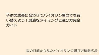バイオリンの肩当てとは?成長する子供に欠かせない理由バイオリンを演奏する上で、肩当ては欠かせないアクセサリーの一つです。特に、子供が成長する過程でバイオリンを続けている場合、肩当ての役割はますます重要になります。子供の体が急速に変化する中で...