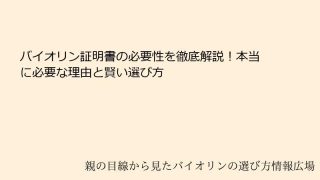 バイオリンを選ぶ際の証明書の役割とは?必要性を徹底解説バイオリンを購入したり、所有したりする際に、証明書の必要性について考えたことはありませんか?バイオリンは単なる楽器ではなく、芸術品や投資対象としても価値を持つものです。特に、古いバイオリ...