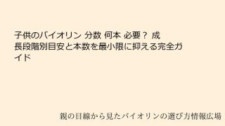 分数バイオリンとは? 子供の成長に欠かせないサイズの基礎知識バイオリンを始める子供を持つ親御さんにとって、最初にぶつかる壁の一つが「分数バイオリン」の存在です。そもそも分数バイオリンとは何なのか、そして子供の成長過程でバイオリン 分数 何本...