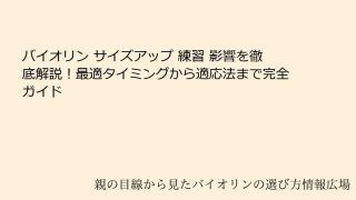 バイオリンのサイズアップとは?練習への影響を徹底解説バイオリンを演奏する人々にとって、楽器のサイズは非常に重要な要素です。特に、成長期の子供たちや、体格が変わる大人にとって、バイオリン サイズアップ 練習 影響は避けて通れないテーマとなりま...