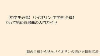 中学生がバイオリンを始めるなら予算10万円以内で十分!初心者向けの選び方入門中学生の時期は、勉強や部活動に忙しい毎日を送っている子どもたちが多く、そんな中で新しい趣味や習い事としてバイオリンを始めるのは素晴らしい選択です。特に、バイオリン ...