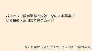 バイオリン留学準備における楽器の選び方と持参のポイントバイオリン留学の魅力とその全体像バイオリン留学を検討している皆さんにとって、海外での音楽教育は夢のような機会です。バイオリンという楽器を携えての留学準備は、単なる旅行の準備を超えた深い意...