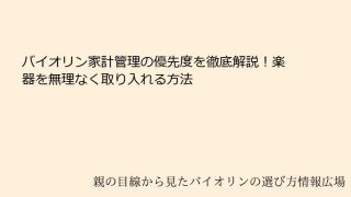 バイオリンや楽器の家計管理における優先度とは? – 家族の豊かな生活を支える鍵近年、バイオリンなどの楽器を趣味として楽しむ人々が増えていますが、家計管理の中でその優先度をどのように設定するかは、多くの家庭で悩みの種となっています。特に、子供...