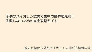 子供のバイオリン試奏で直面する集中力の限界とは?導入と問題の概要子供がバイオリンを始める際、楽器店での試奏は欠かせないステップです。しかし、多くの親御さんが直面する課題が「バイオリン 子ども 試奏 集中力 限界」という問題です。このキーワー...